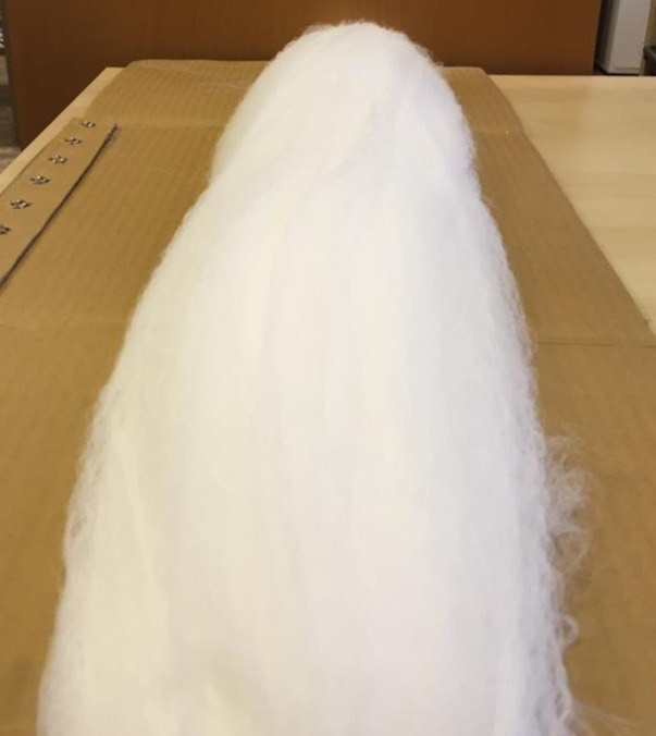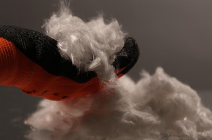 Образцы войлока из Ф-4, полученного термоскреплением, и ваты из волокон Ф-4 и СВМПЭ.