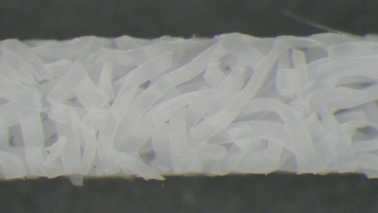 В нашей компании разработан новый подход к решению задач фильтрации высокоагрессивных сред. Речь идет о разработке технологии получения волокна и супертонкого волокна из Ф-4 и создания на его основе пористых материалов, мембран и намоточных изделий различного профиля и формы. Плотность спеченного волокна при компьютерной намотке может варьироваться от 0,5 г/см3 до 2,0 г/см3. Максимальный внутренний диаметр осесимметричных оболочек вращения 500 мм с любой толщиной стенки и высотой фильтра до 1500 мм. Листовые пористые материалы толщиной от 2 до 6 мм могут достигать 1500 мм в ширину и до 5 метров в длину, что позволяет создать высокоэффективную огромную гофрированную поверхность фильтрации. На сегодняшний день это самые дешевые и эффективные фильтры из фторопластовых материалов. Пористость таких фильтров может достигать 60 %.