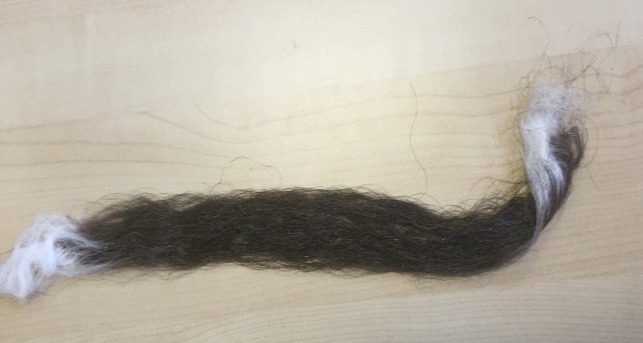Фото модифицированного волокна на основе фторопласта Ф-4 (А) и вид вблизи (Б):