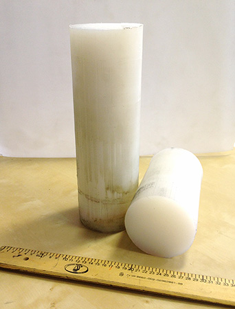 СВМПЭ , полученный методом гидроэкструзии ( d=60 мм, L=1000 мм,) прочность - 1200 кг/см2